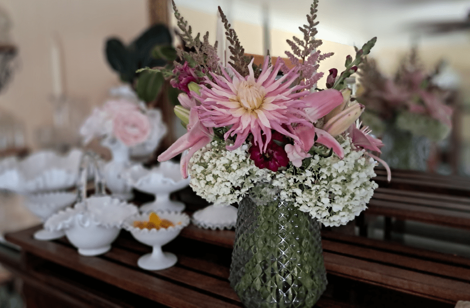 collectible epergnes and compotes to antique console dishes, our vases and vase flower arrangements are meant to be kept, loved, and refilled for your next special moment!